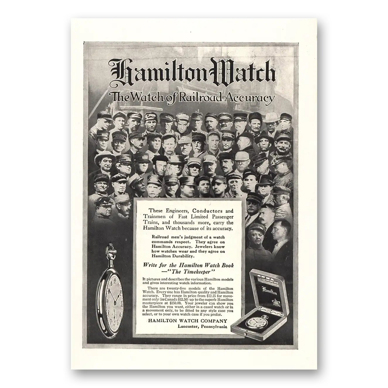 1914 Hamilton Watch Print Ad | Engineers Conductors