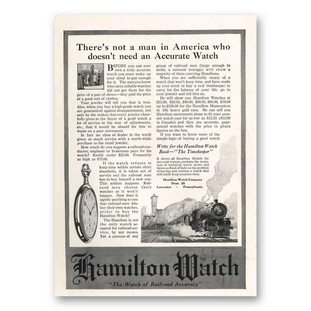 1916 Hamilton Watch Print Ad | Accurate Watch