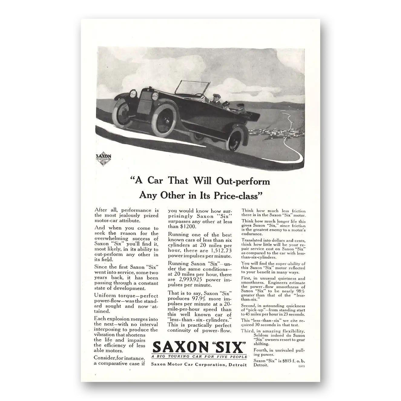 1916 Saxon Six Print Ad | Out Perform