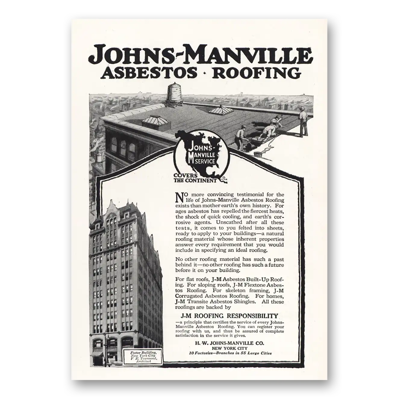 1917 Johns Manville Print Ad | Asbestos Roofing