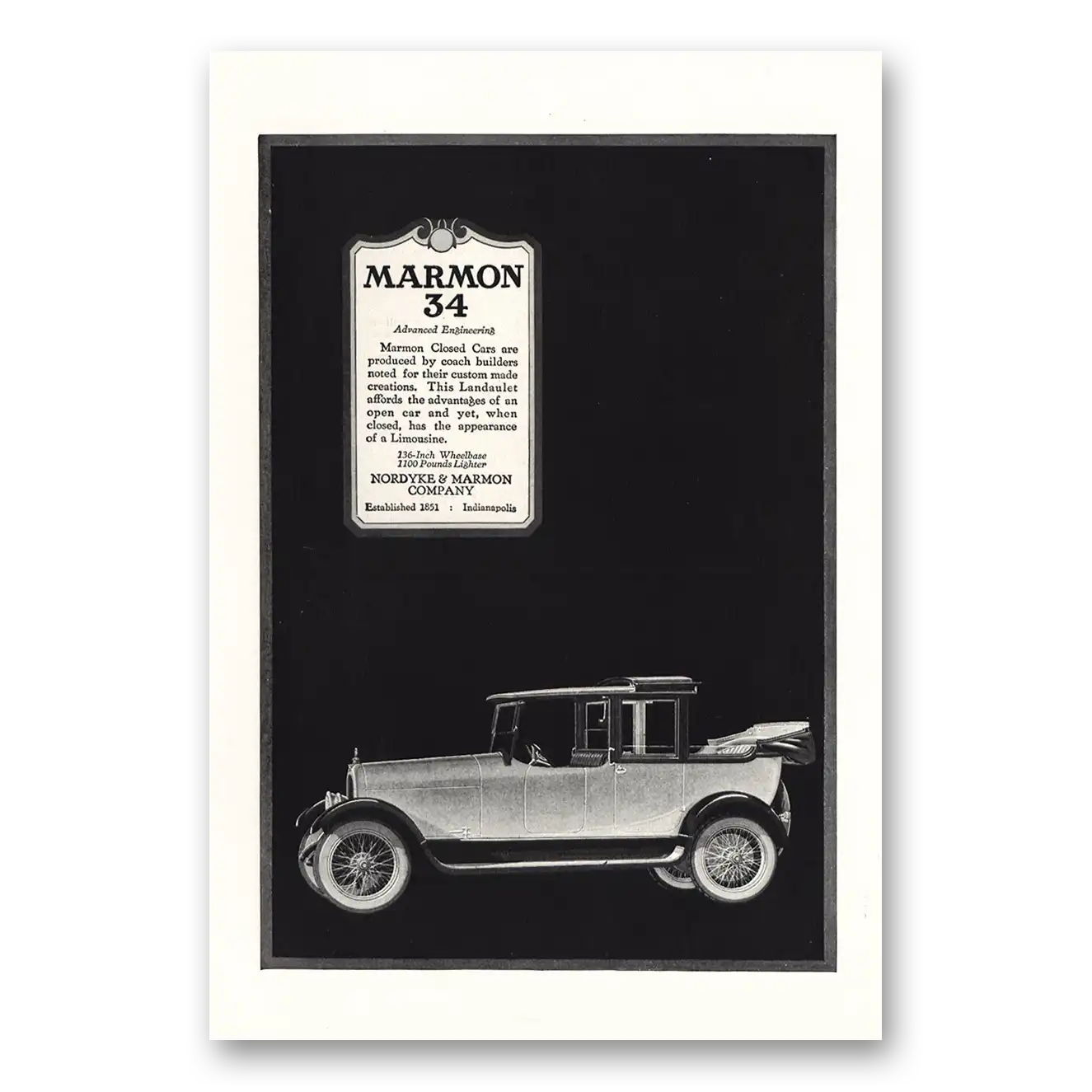 1918 Marmon 34 Print Ad | Landaulet Affords