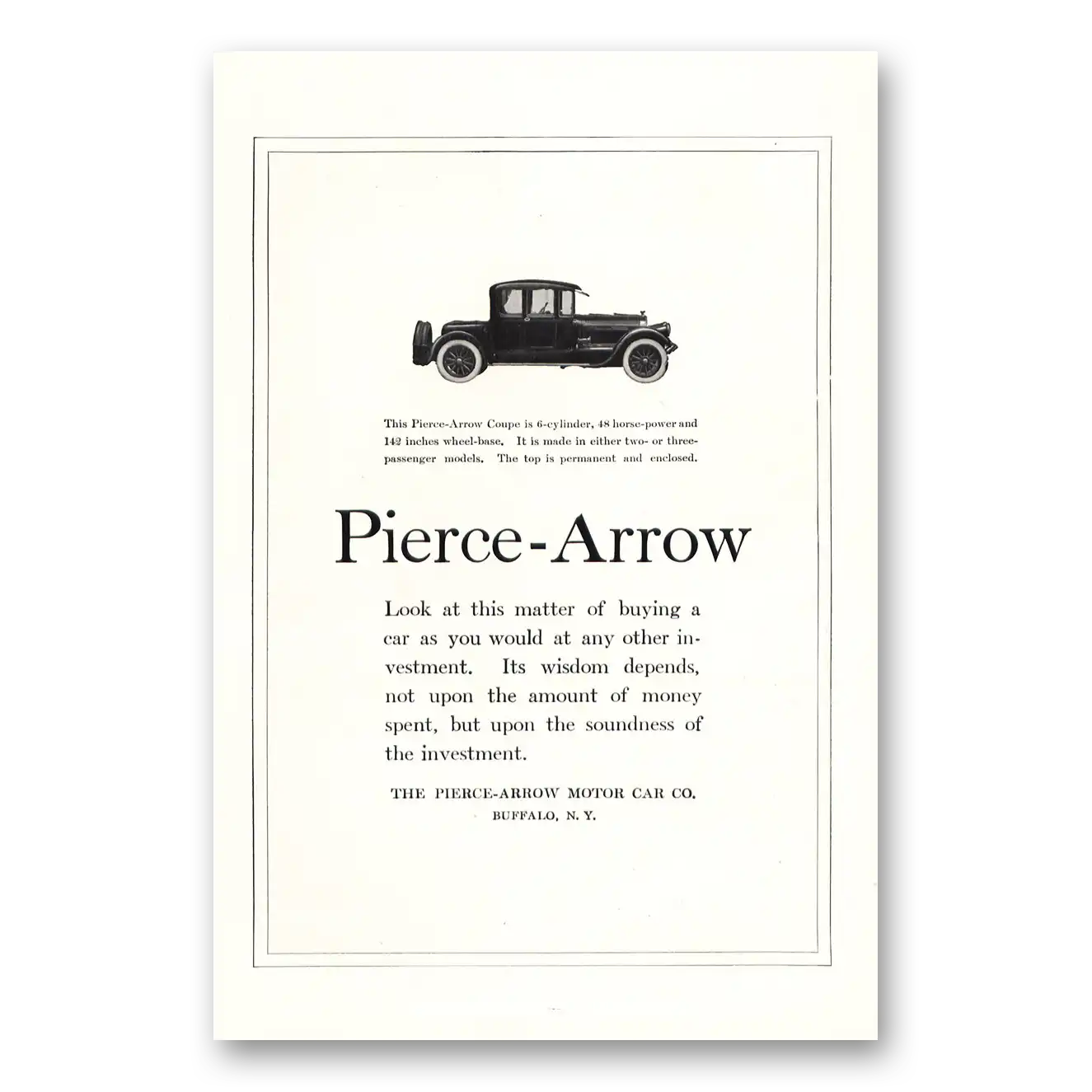 This is an original 1918 Pierce Arrow Motor Car print ad published by Pierce Arrow Motor Car.