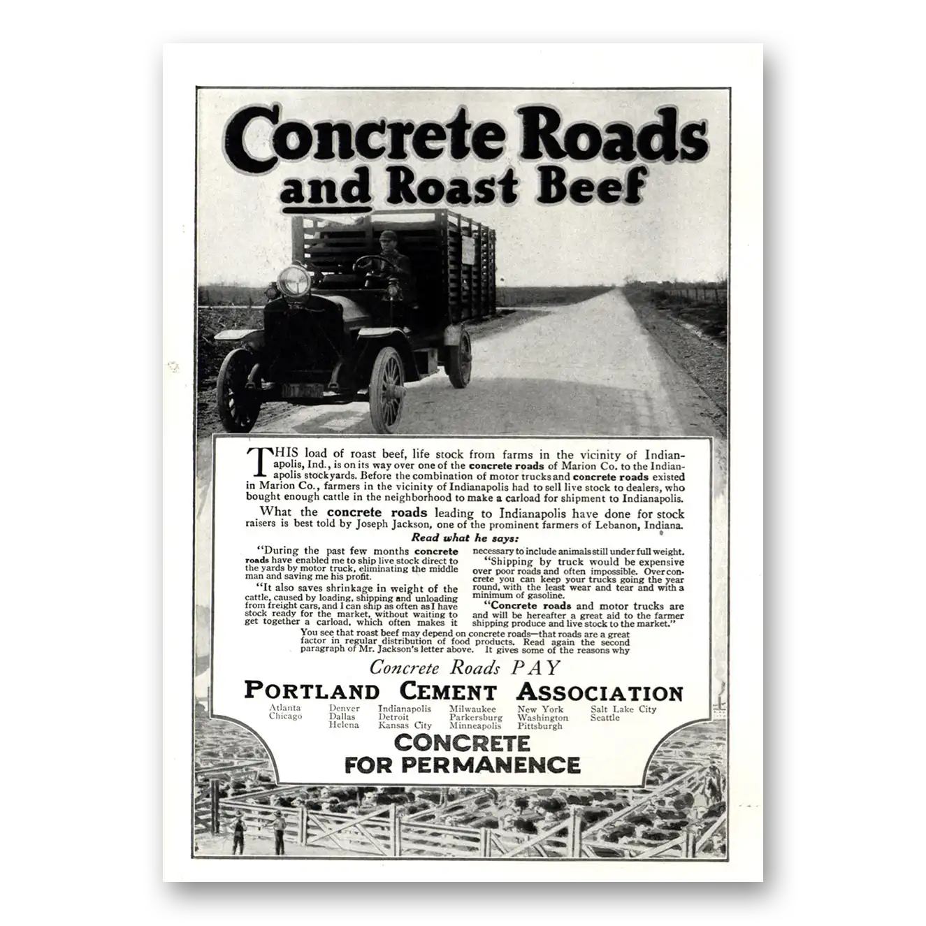 1918 Portland Cement Print Ad | Concrete Roads