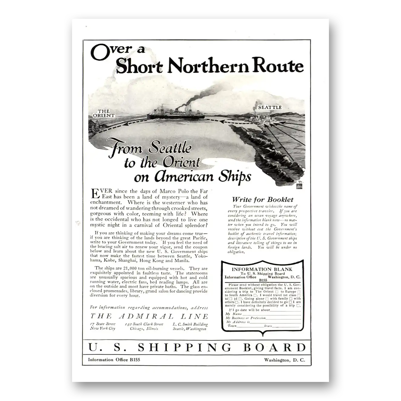 1922 Admiral Line Print Ad | Northern Route