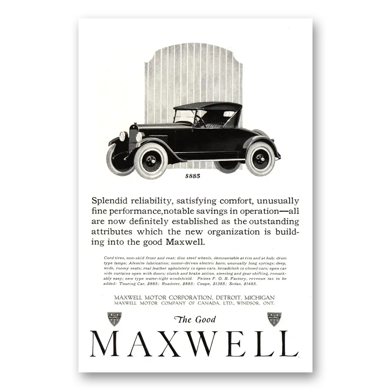 1922 Maxwell Motors Print Ad | Splendid Reliability