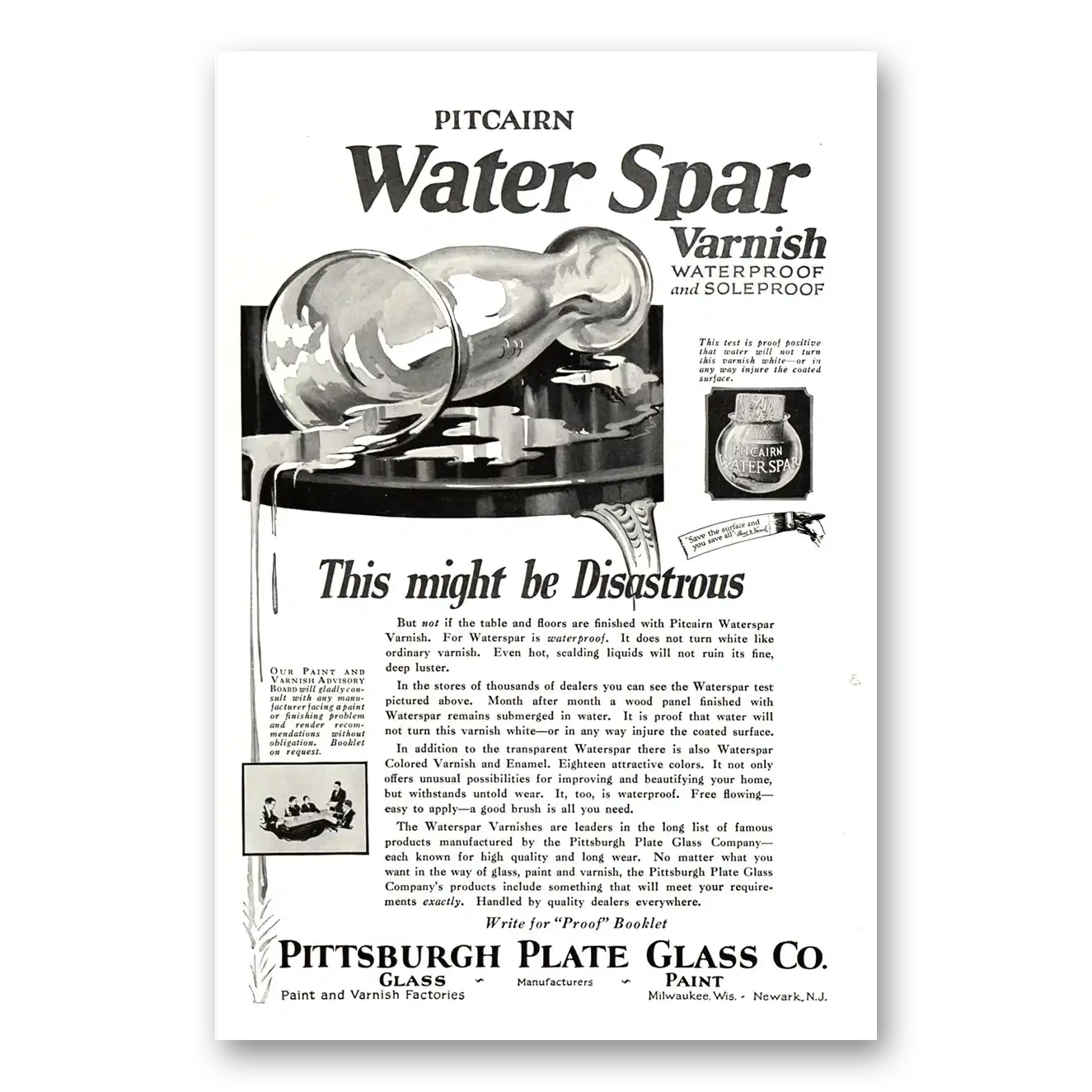 1922 PPG Pittsburgh Plate Glass Print Ad | Pitcairn Water Spar