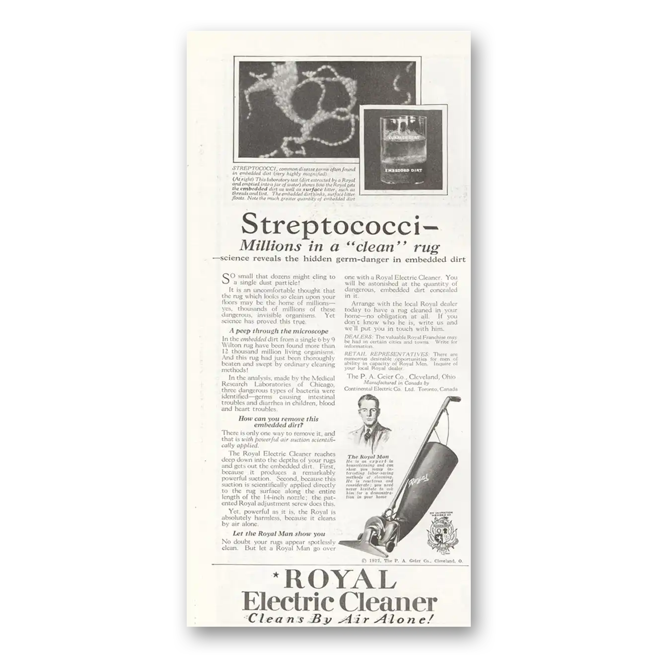 1922 Royal Electric Cleaner Print Ad | Streptococci