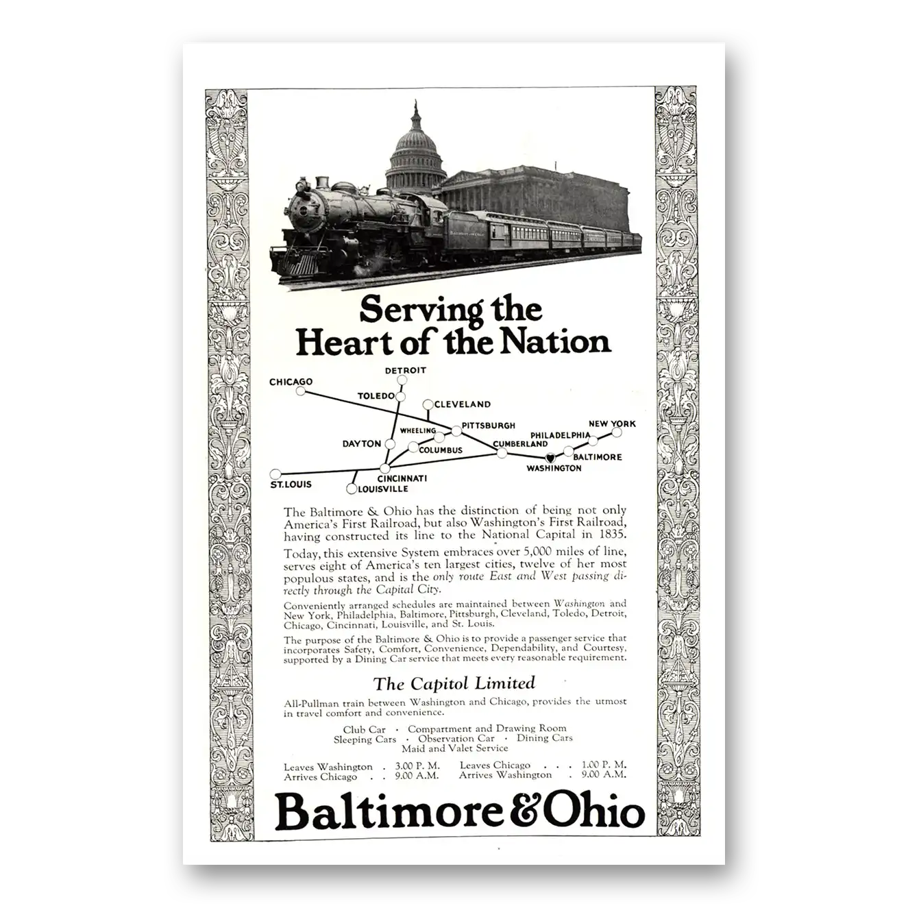1923 Baltimore and Ohio Railroad Print Ad | Heart Nation1923 Baltimore and Ohio Railroad Print Ad | Heart Nation