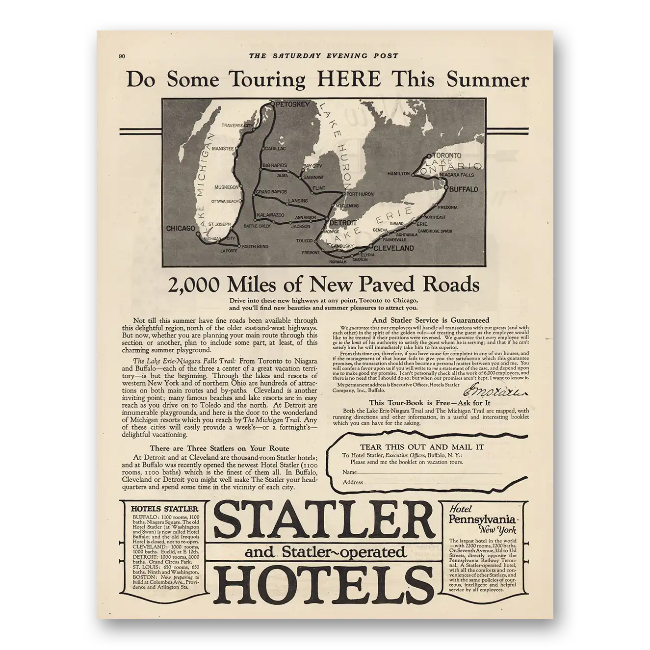 This is an original 1923 Statler Hotels print ad published by Statler Hotels.