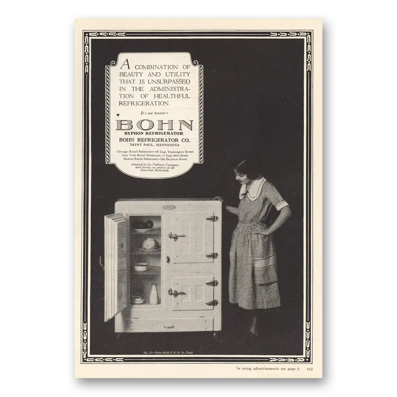 1924 Bohn Refrigerator Print Ad | Beauty Utility