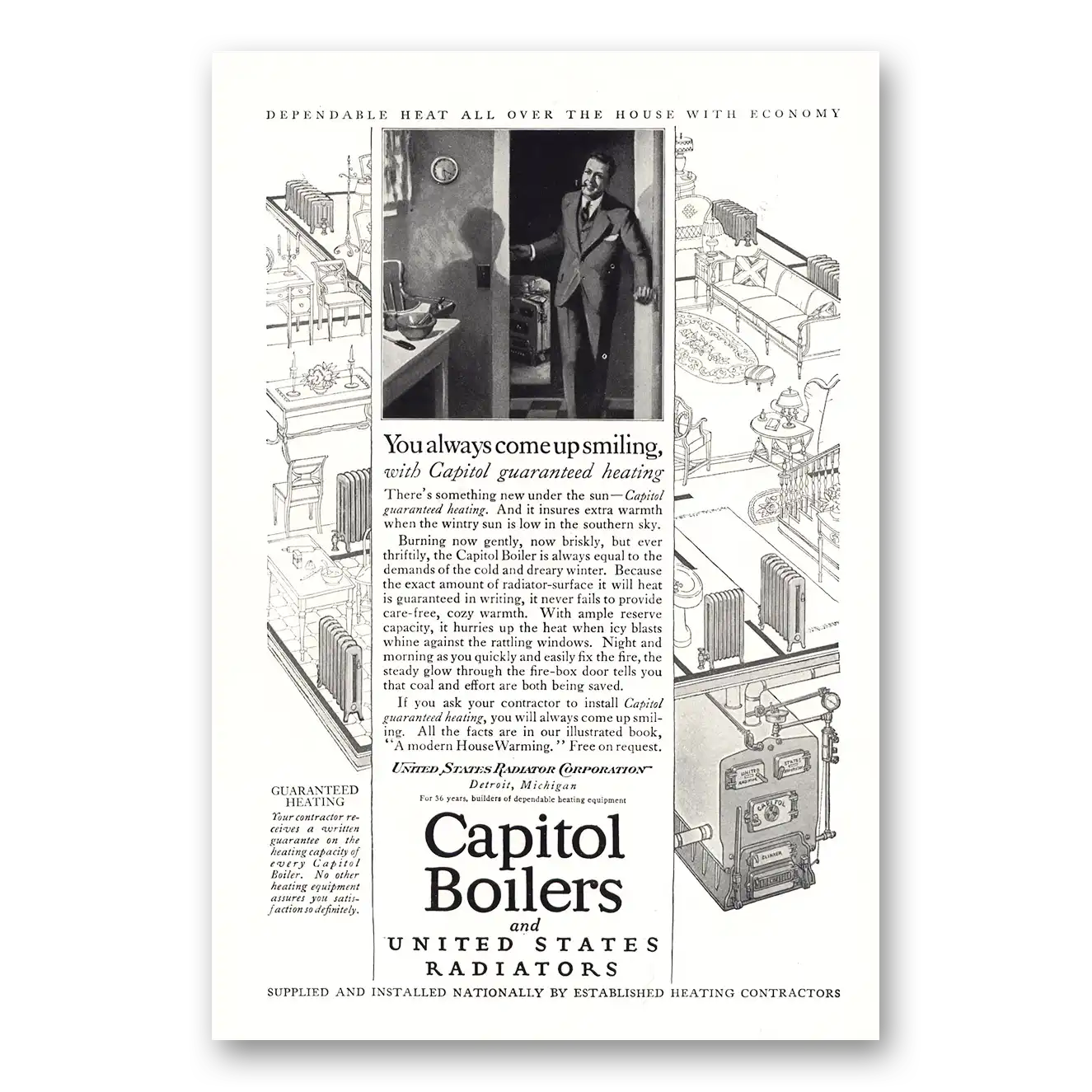 1924 Capitol Boilers Print Ad | Smiling
