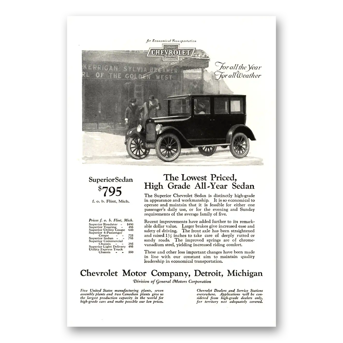 This is an original 1924 Chevrolet Sedan print ad published by Chevrolet.