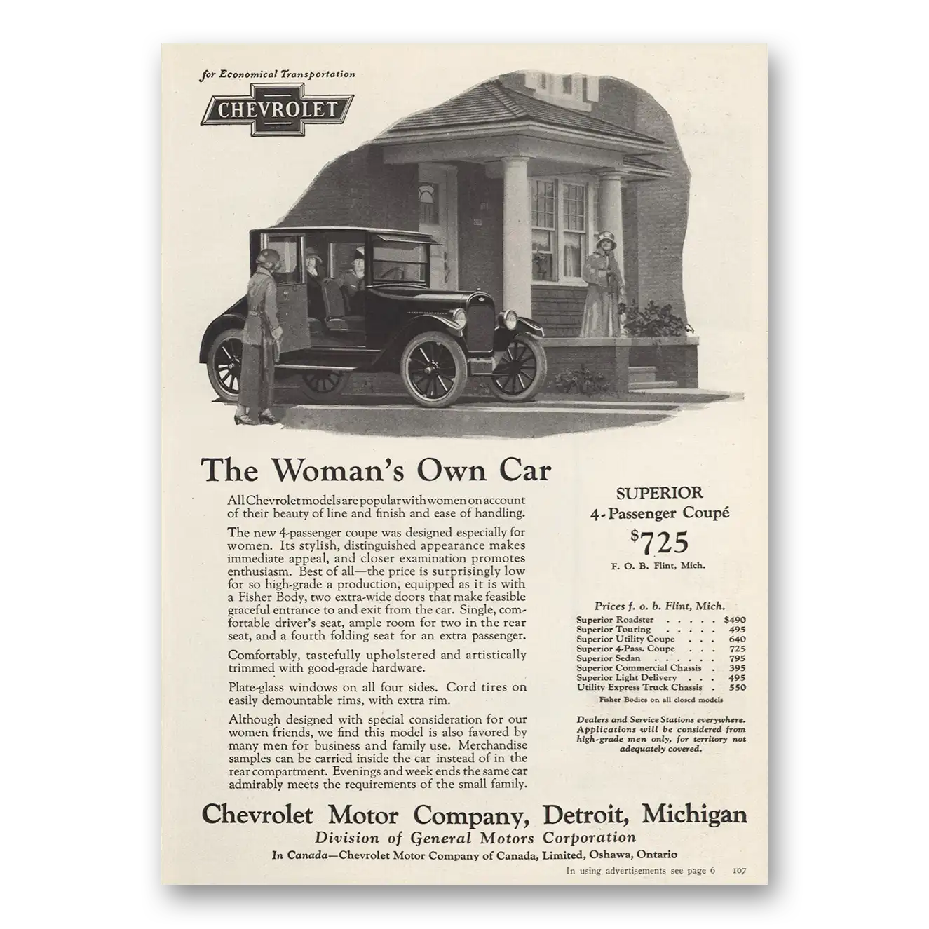 1924 Chevrolet Sedan Print Ad | Womans Car