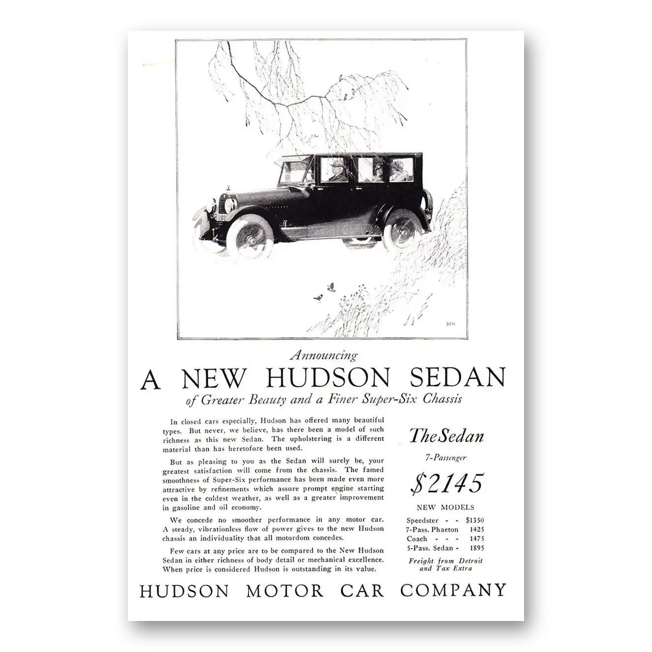 1924 Hudson Motor Car Print Ad | Sedan