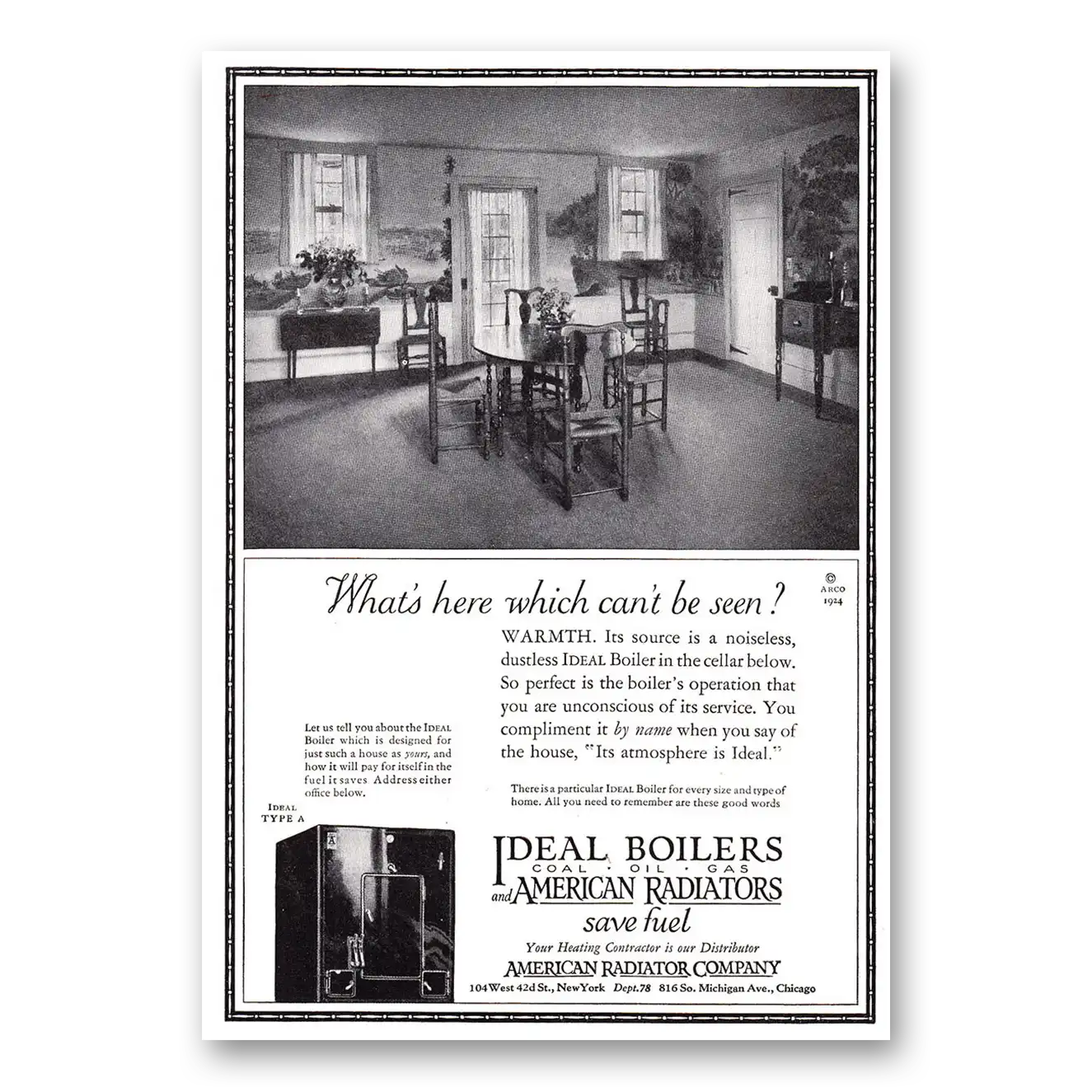 1924 Ideal Gas Boilers Print Ad | Cant Be Seen