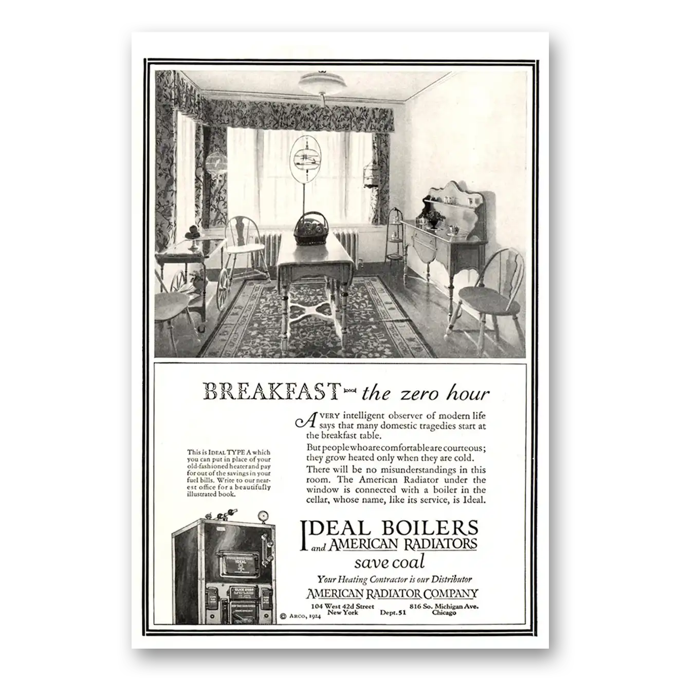 1924 Ideal Gas Boilers Print Ad | Zero Hour