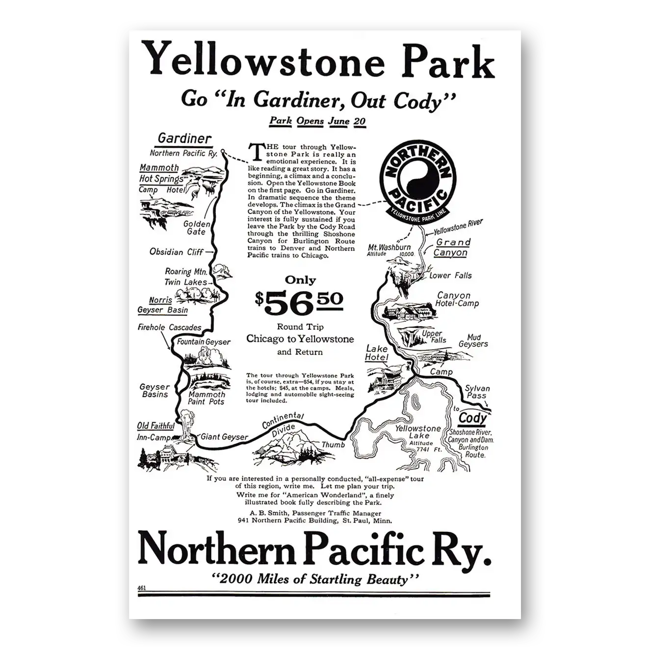 1924 Northern Pacific Railway Print Ad | Yellowstone