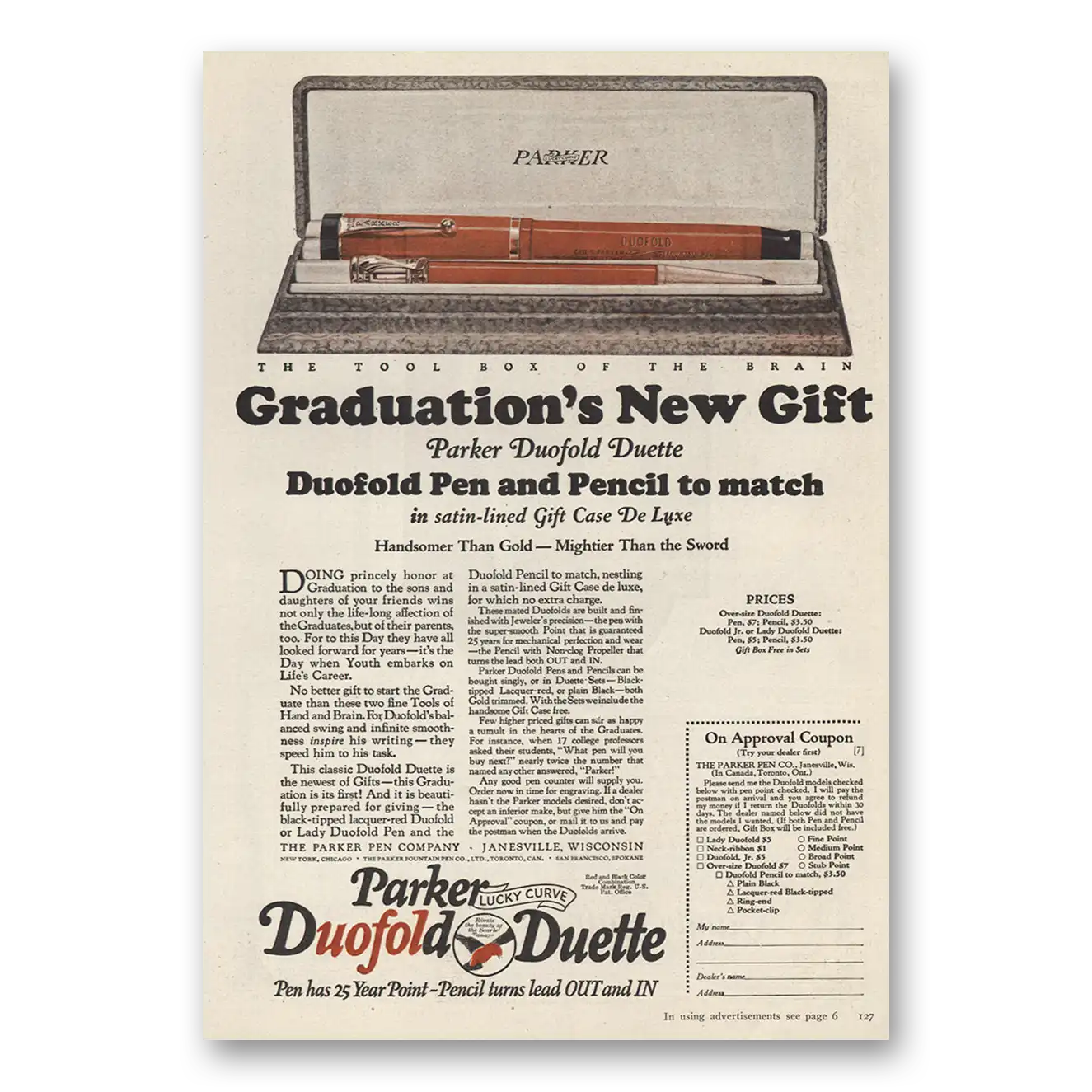 1924 Parker Duofold Duette Pen Print Ad | Graduation