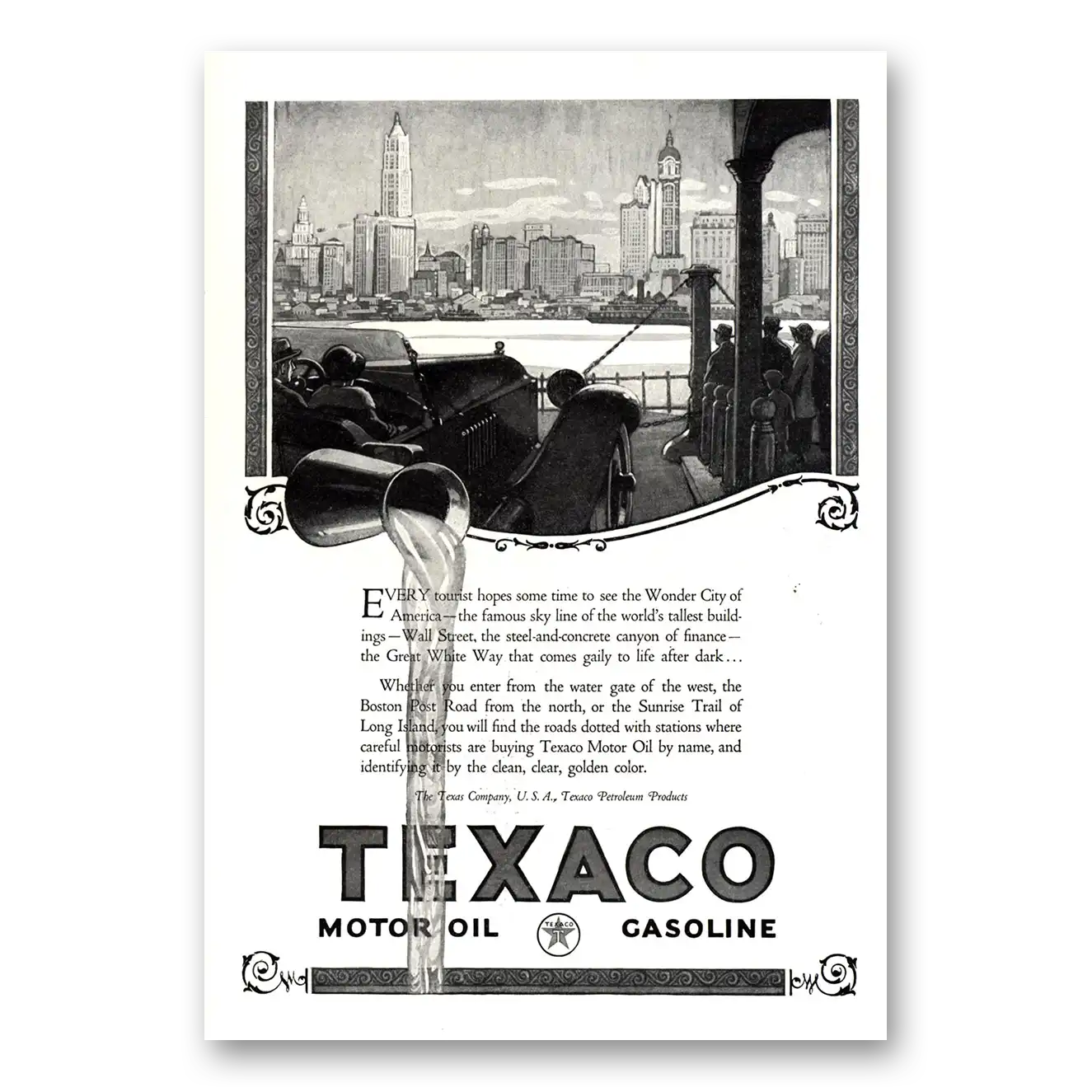 1924 Texaco Motor Oils Gasoline Print Ad | Wonder City