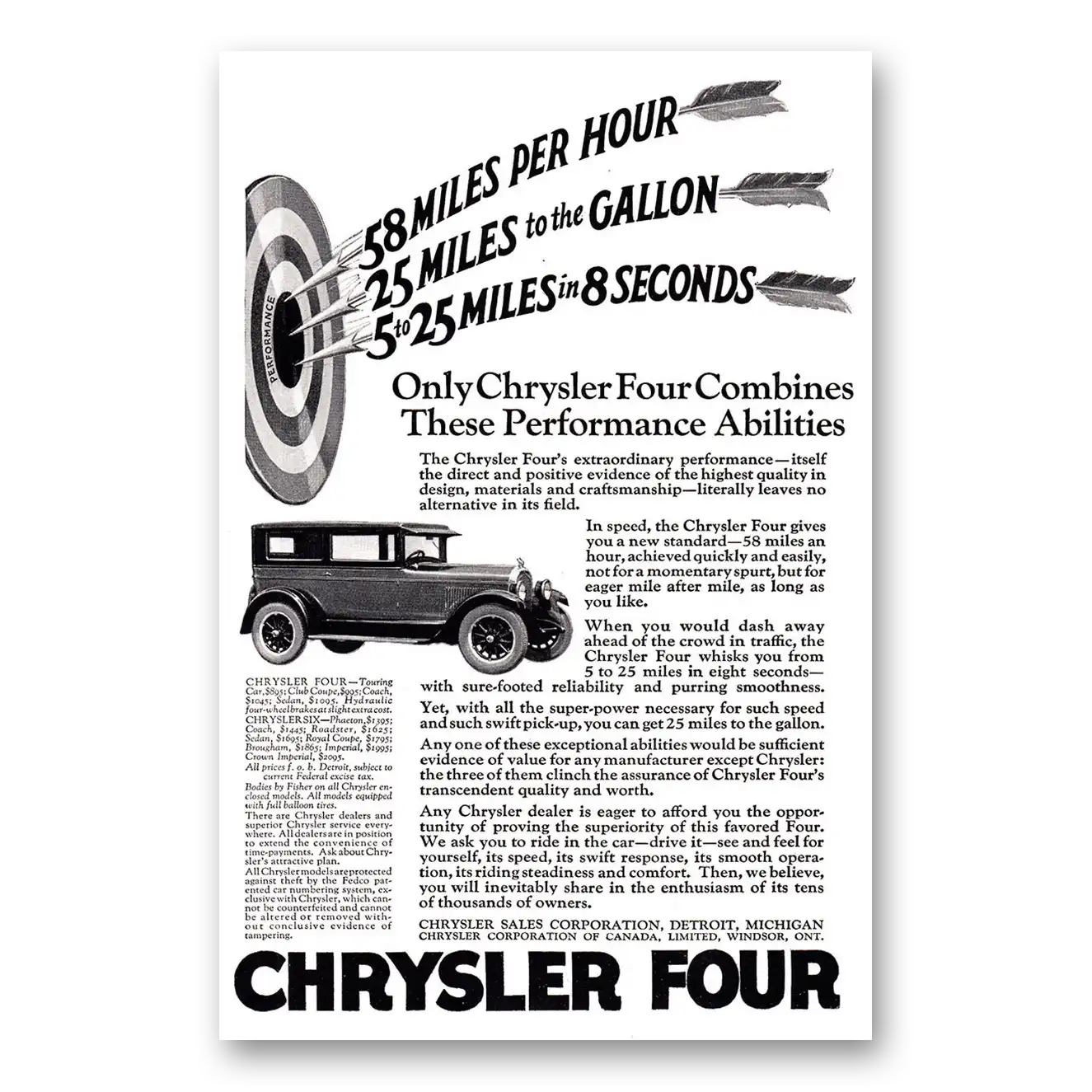 1925 Chrysler Four Print Ad | 58 Miles