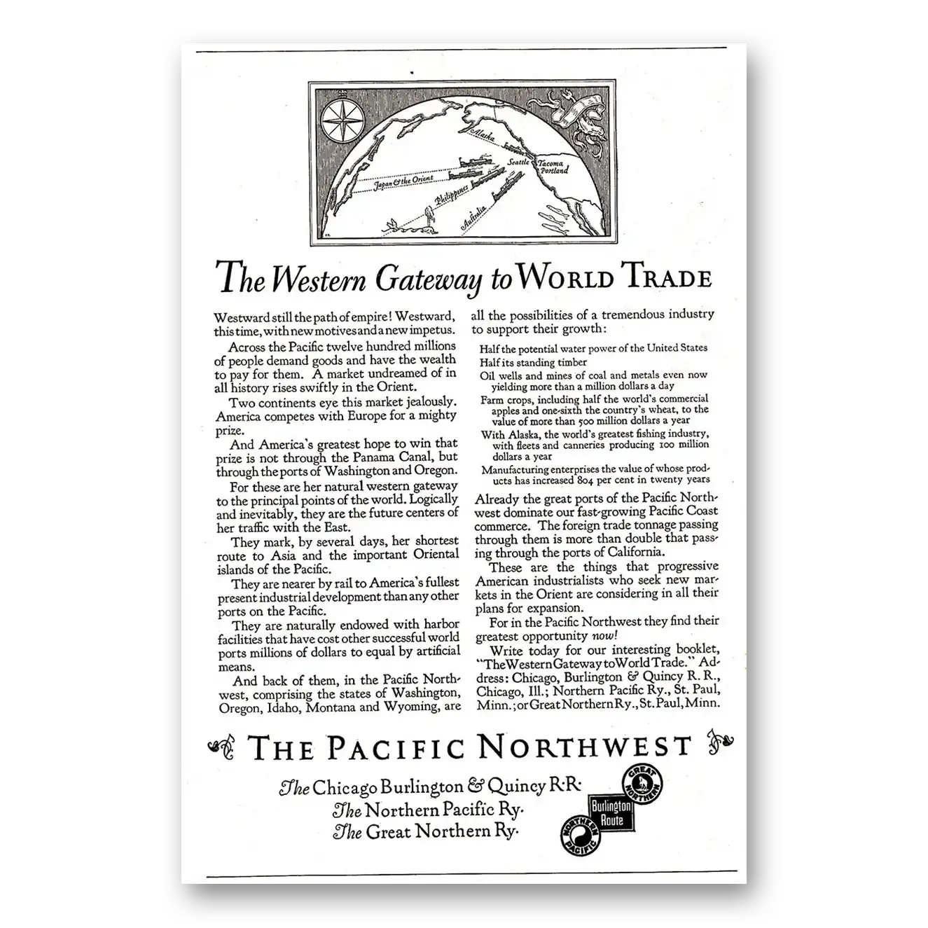 1925 Northern Pacific Railway Print Ad | World Trade
