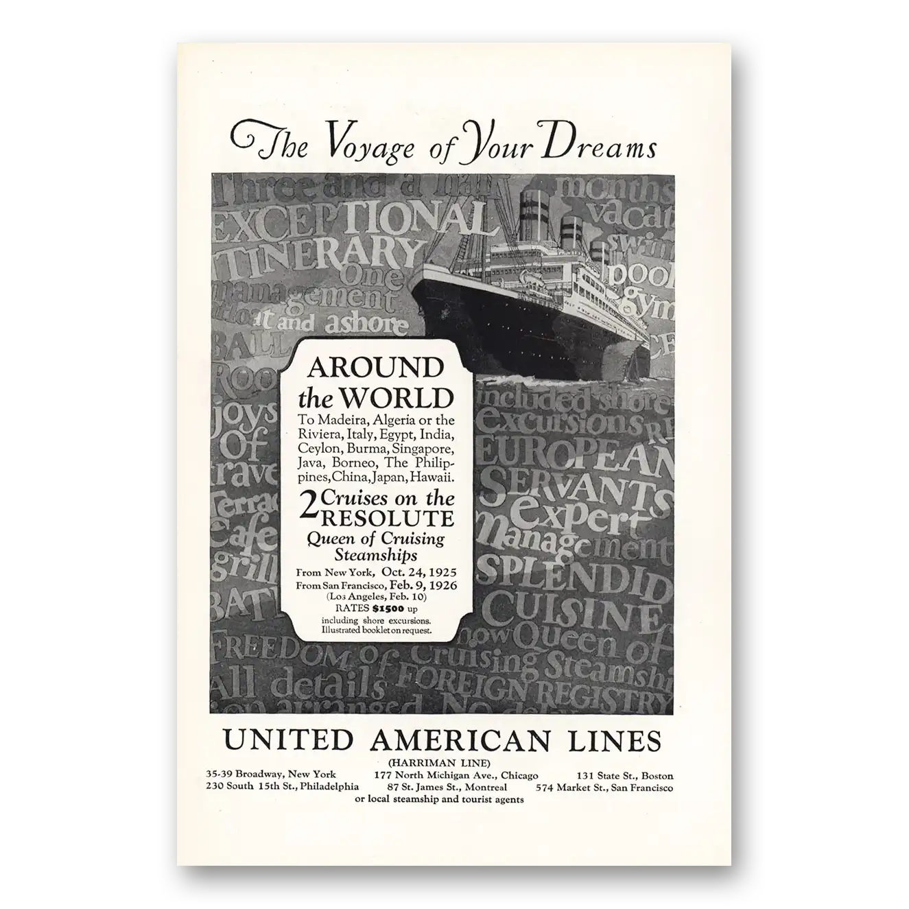 1925 United American Lines Print Ad | Voyage Dreams