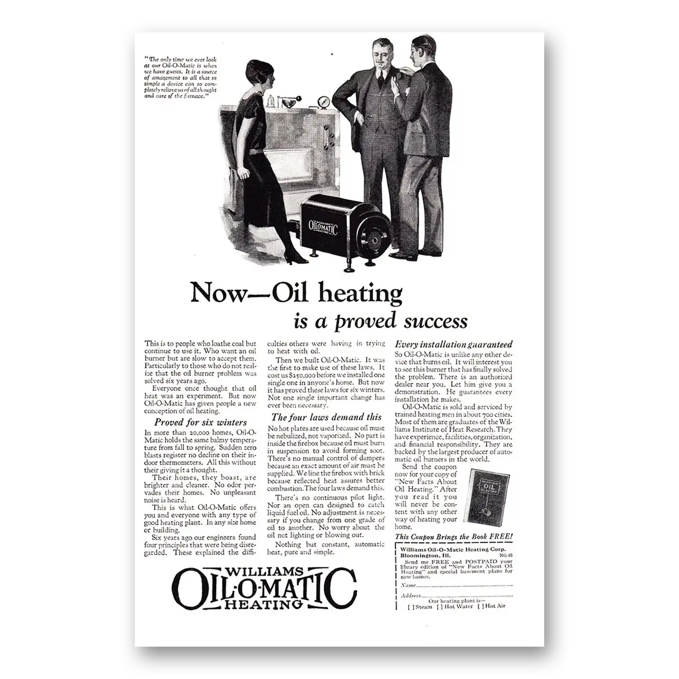 1925 Williams Oil-O-Matic Print Ad | Oil Heating