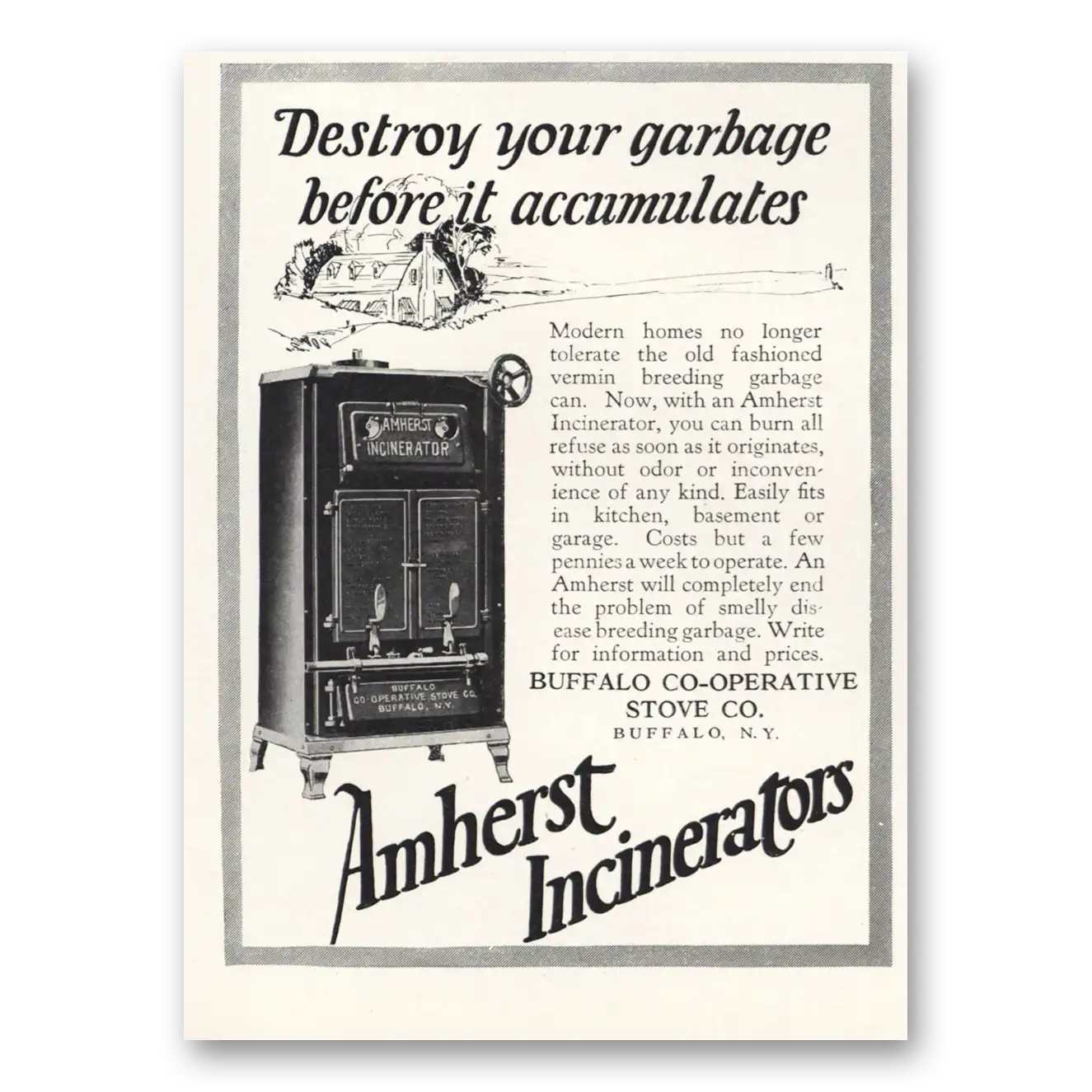 This is an original 1926 Amherst Incinerators print ad published by Buffalo Co-Operative Stove Co.