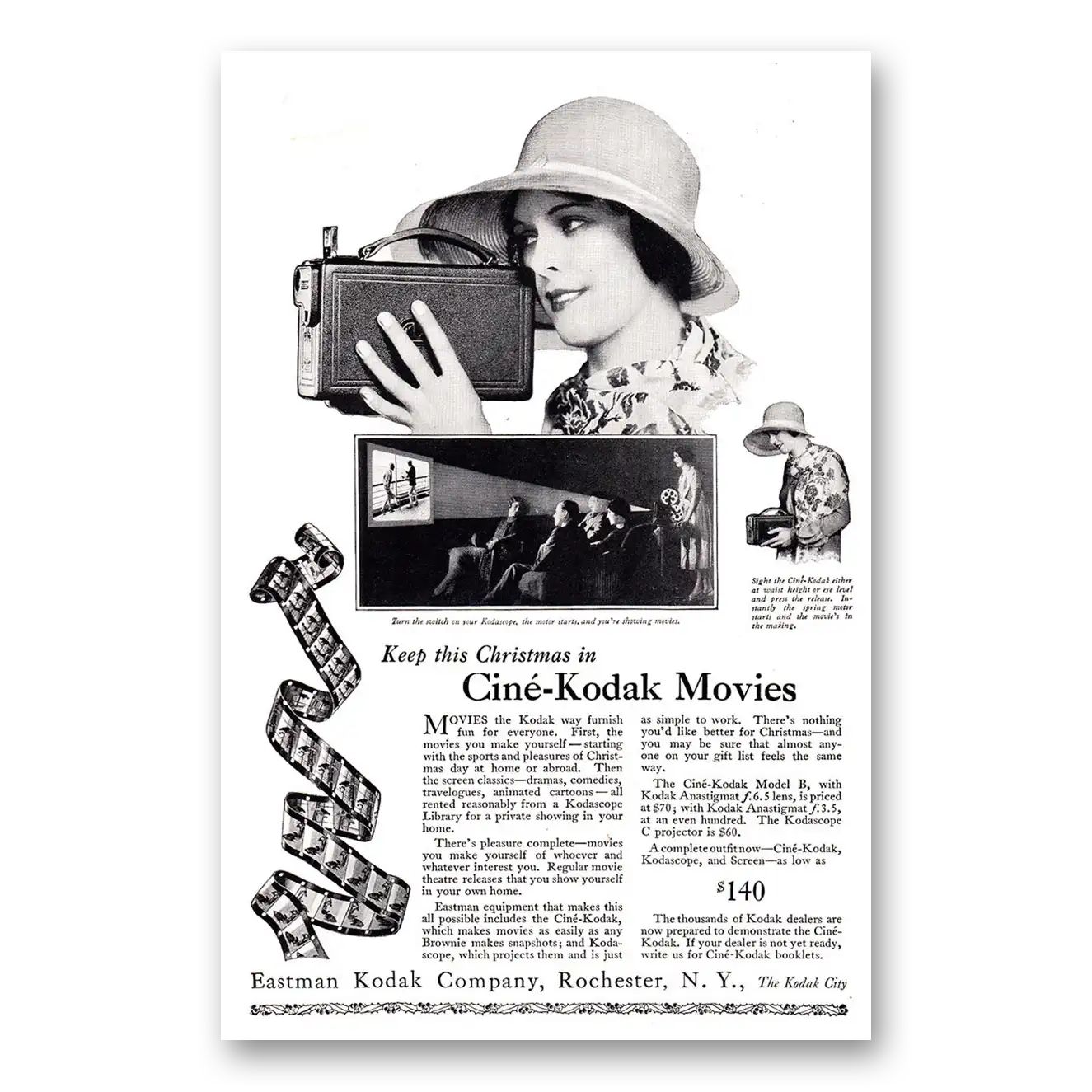 1926 Cine Kodak B Camera Print Ad | Christmas