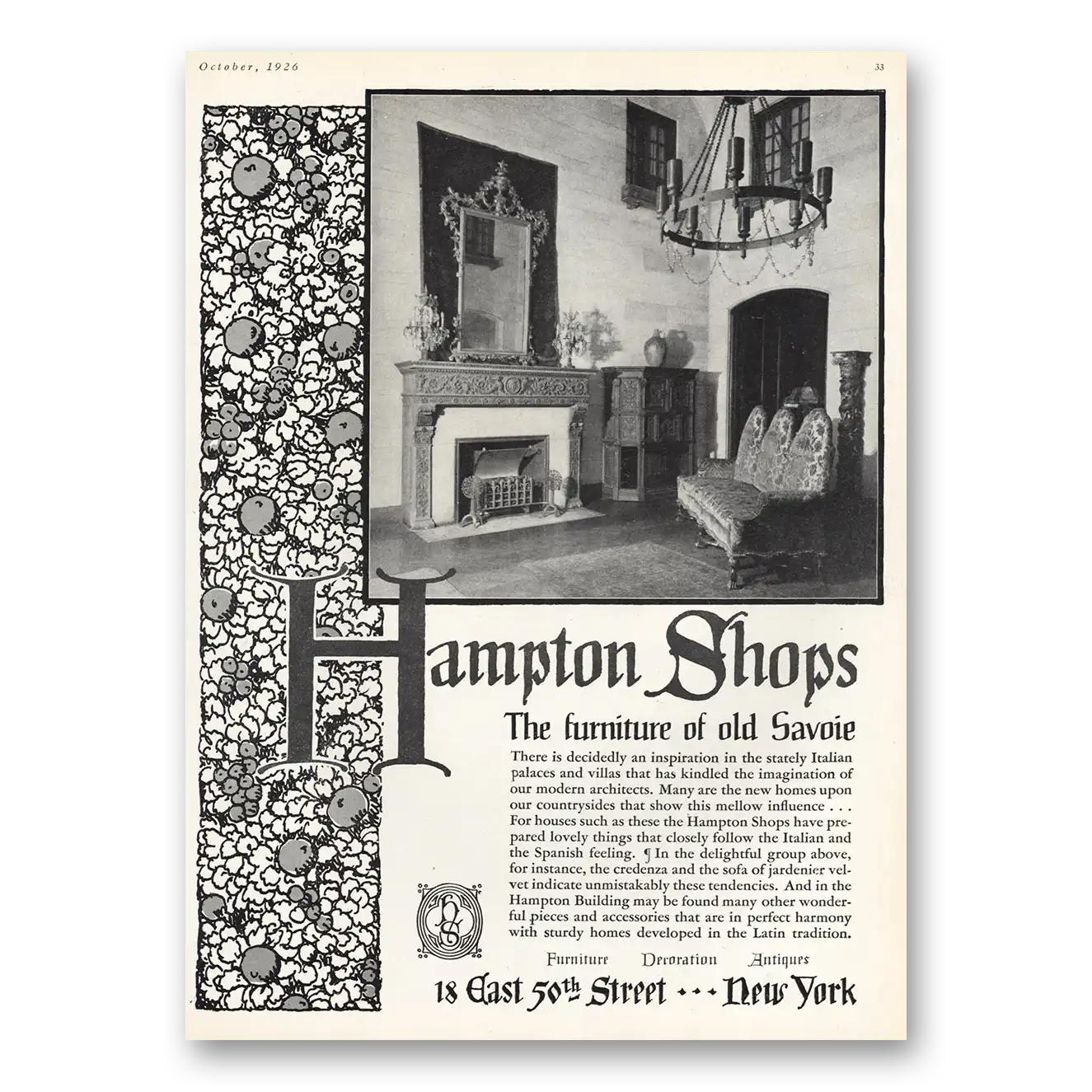 1926 Hampton Shops Print Ad | Furniture Old Savoie