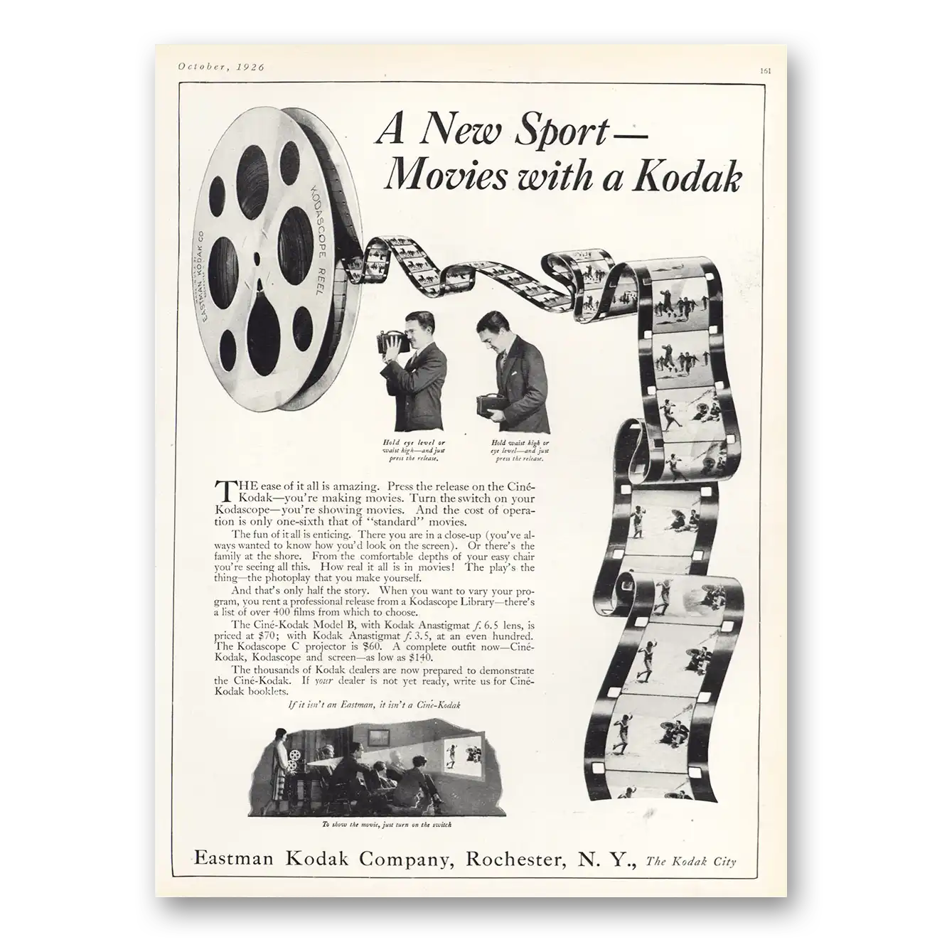 This is an original 1926 Kodak Movie Camera print ad published by Eastman Kodak.