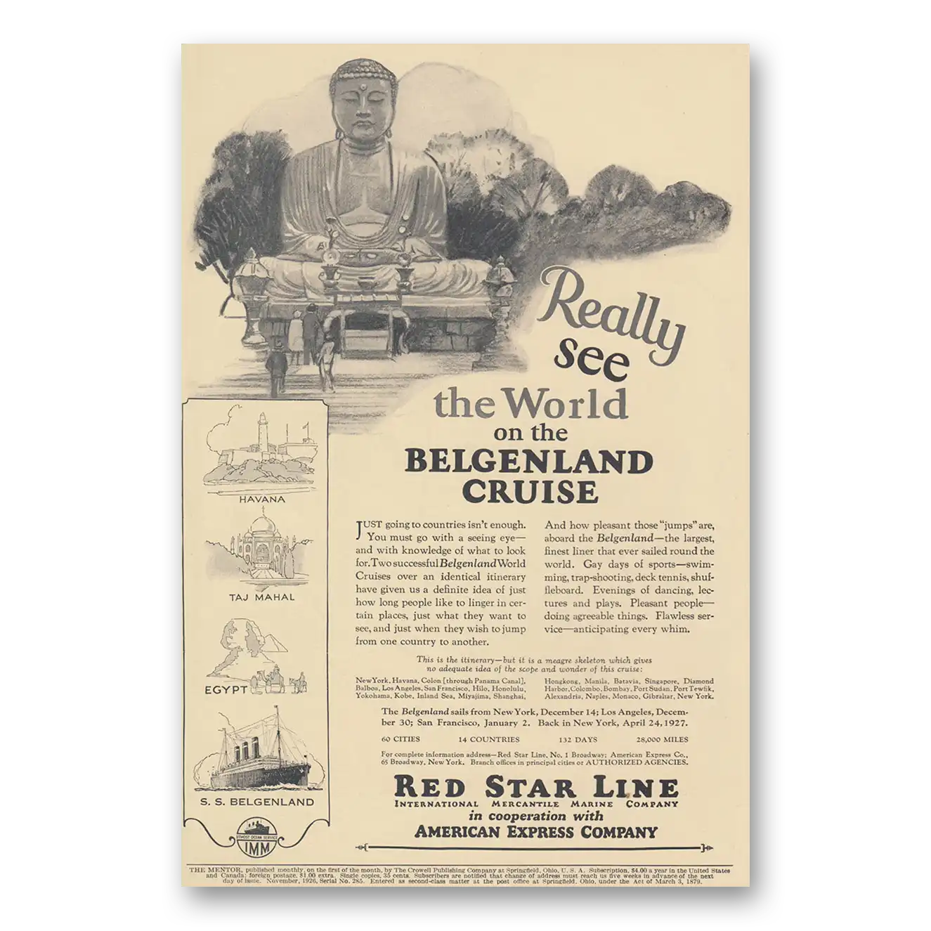 1926 Red Star Line Print Ad | Belgenland Cruise1926 Red Star Line Print Ad | Belgenland Cruise