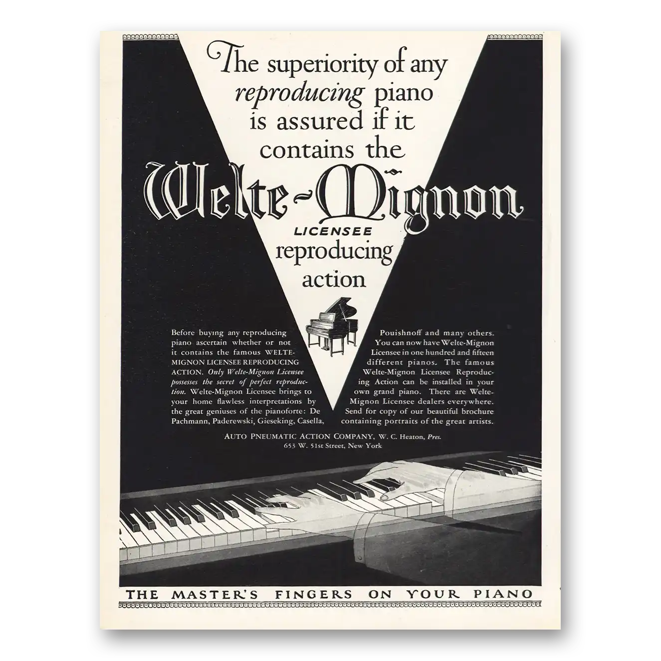 This is an original 1926 Welte Mignon Reproducing Piano print ad published by Auto Penumatic Action Co.