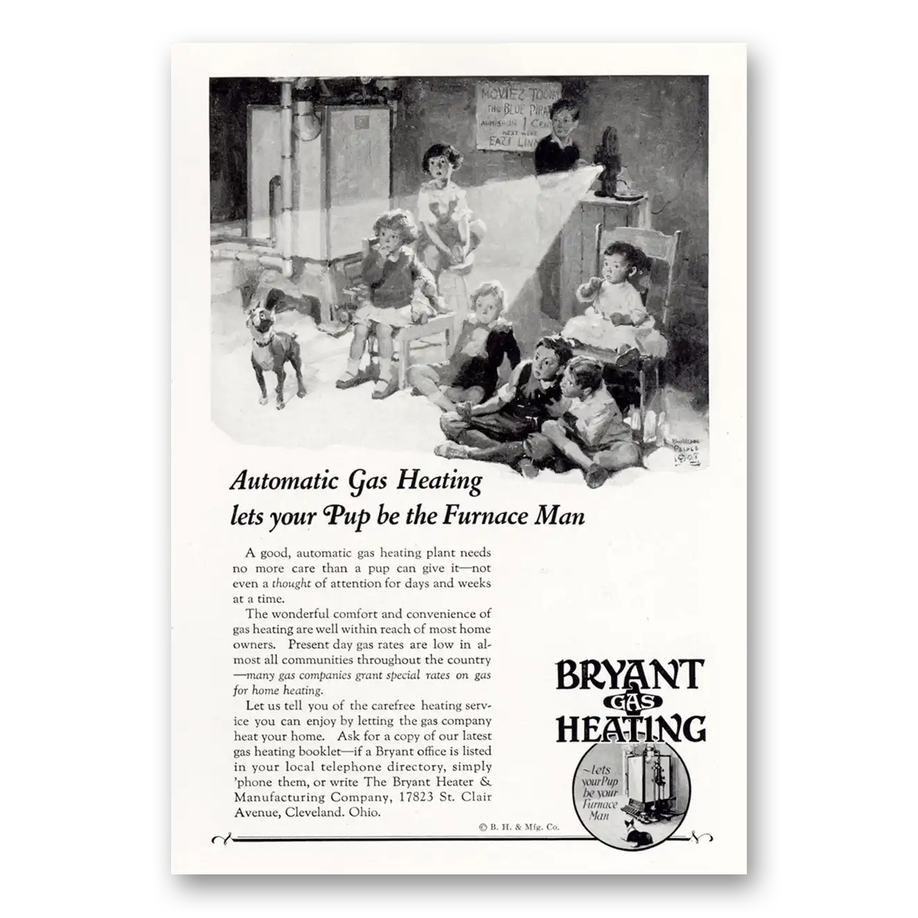 1927 Bryant Gas Heating Print Ad | Furnace Man