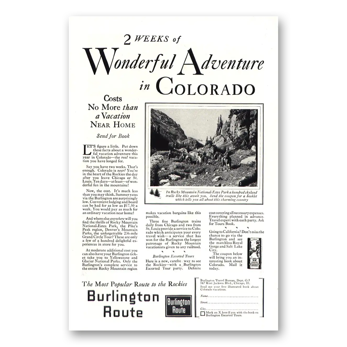 This is an original 1927 Burlington Route print ad published by Burlington Route.
