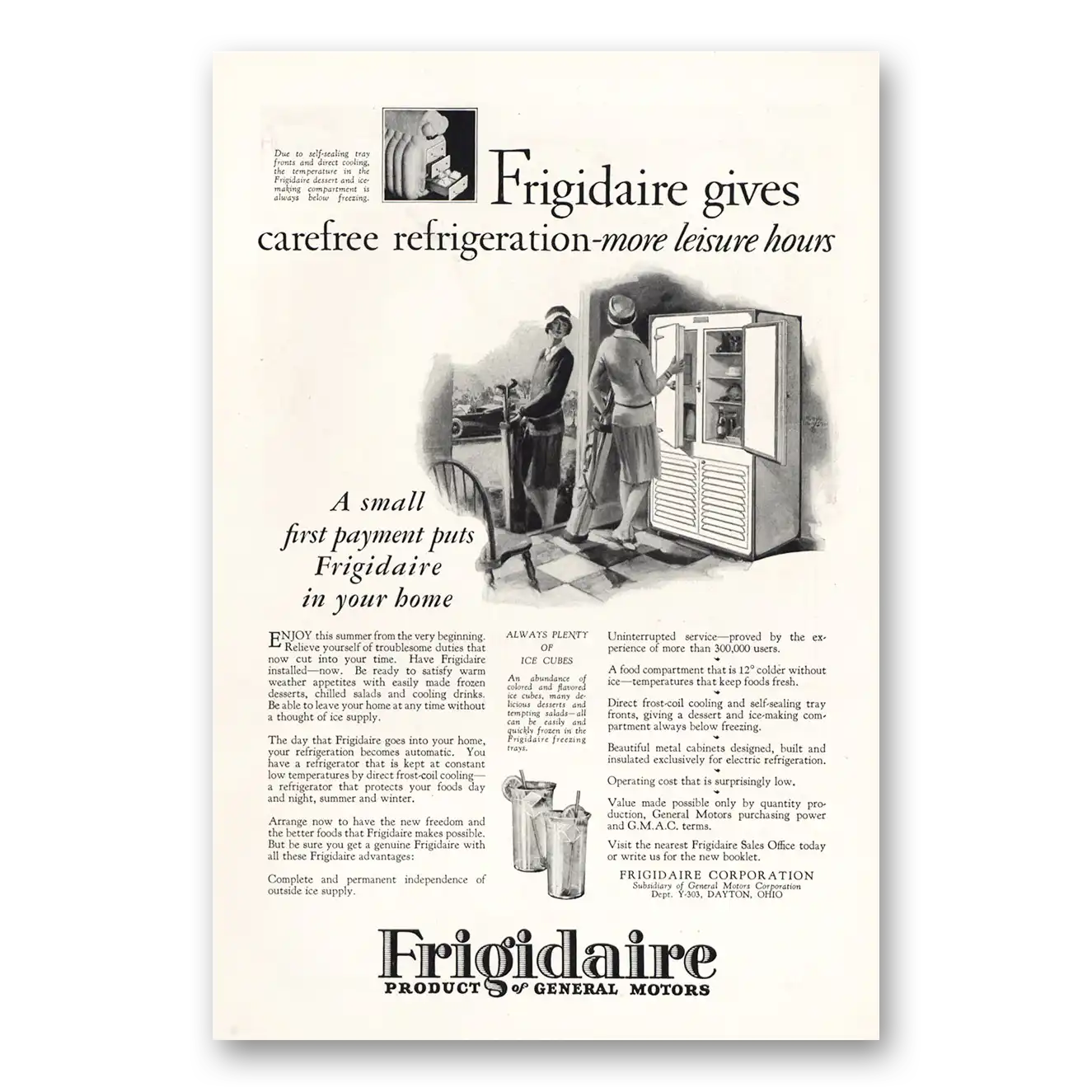 1927 Frigidaire Refrigerator Print Ad | Carefree