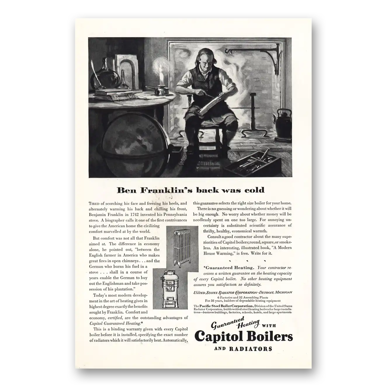 1928 Capitol Boilers Print Ad | Ben Franklins