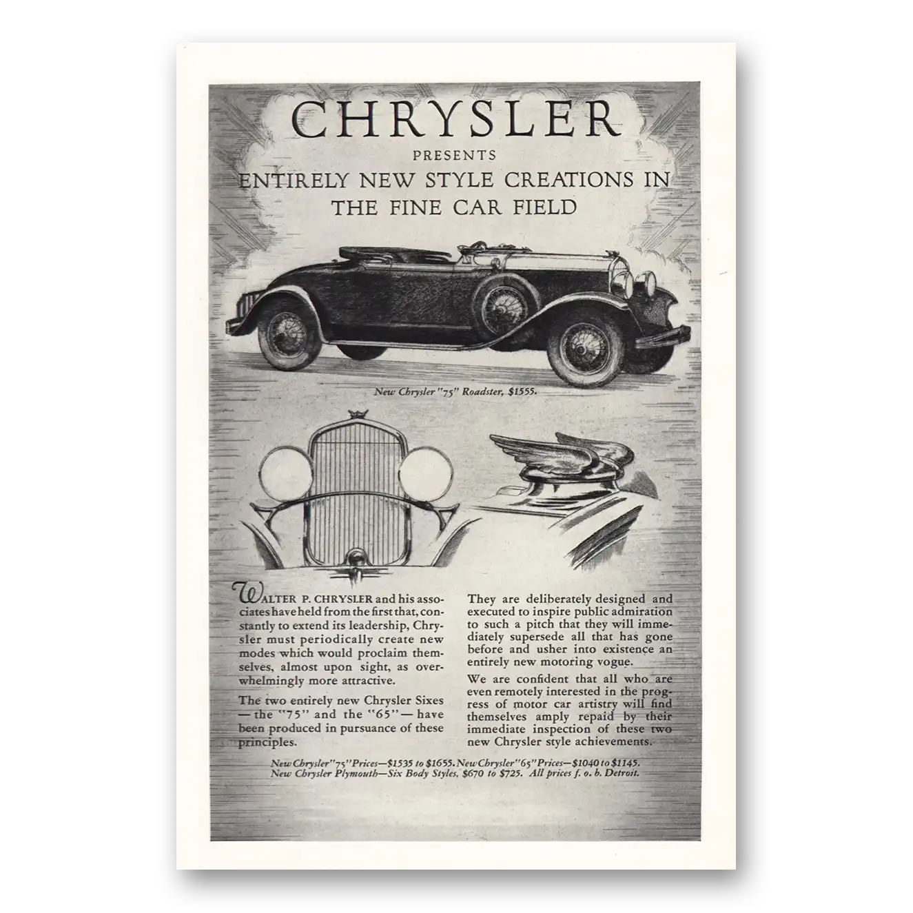 1928 Chrysler 75 Print Ad | Roadster