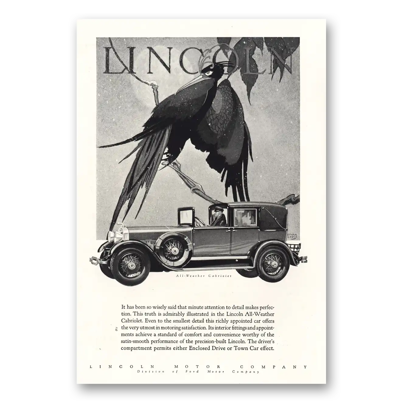 1928 Lincoln Cabriolet Print Ad | All Weather