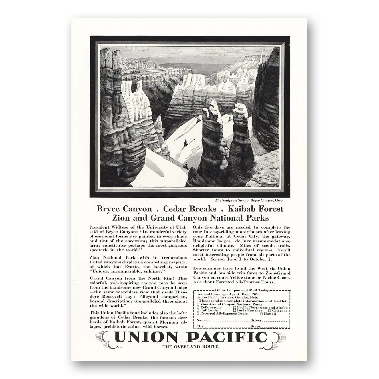 1928 Union Pacific Railroad Print Ad | Bryce Canyon