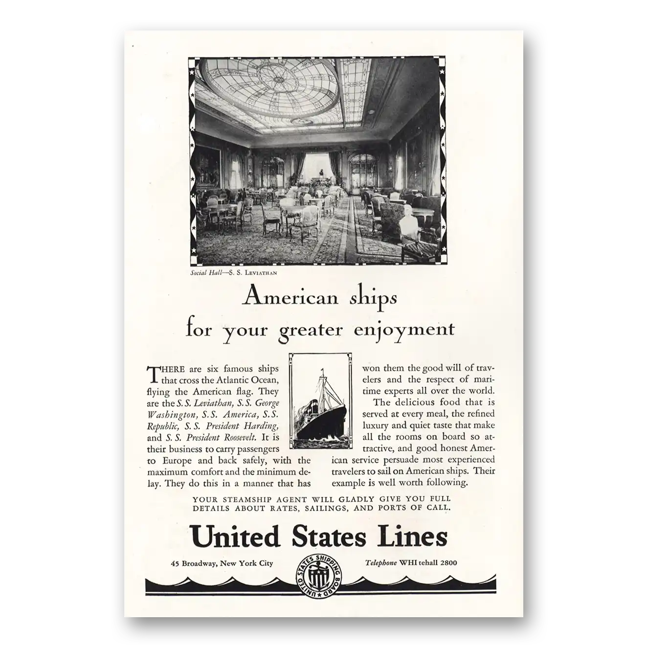 1928 United States Lines Print Ad | American Ships