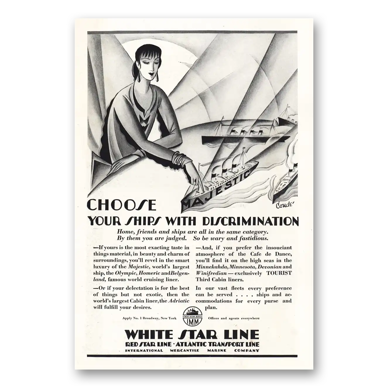 1928 White Star Line Print Ad | Discrimination