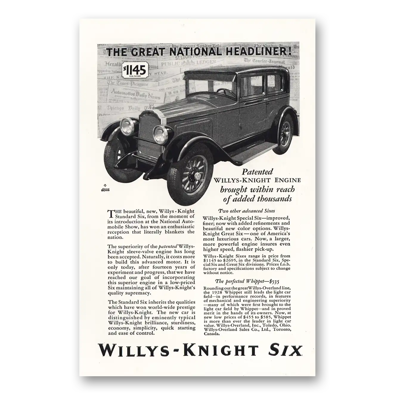 This is an original 1928 Willys Knight print ad published by Willys Overland.