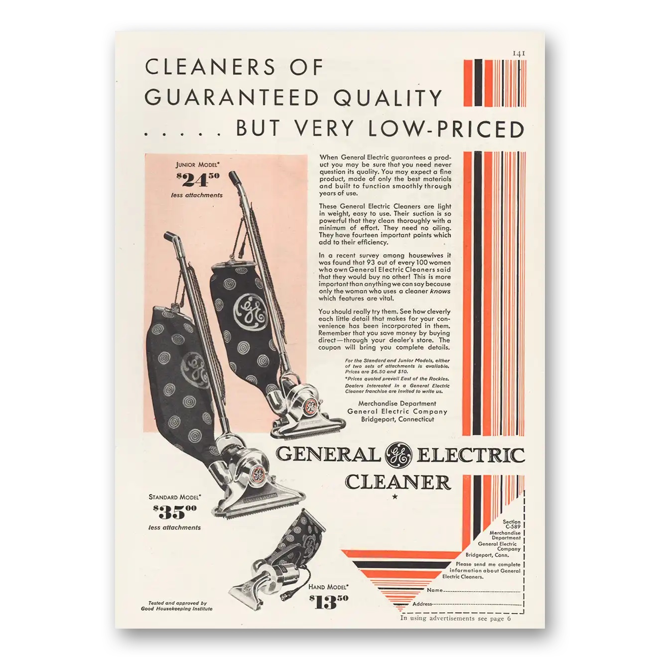 1929 General Electric Vacuum Print Ad | Cleaner Guaranteed