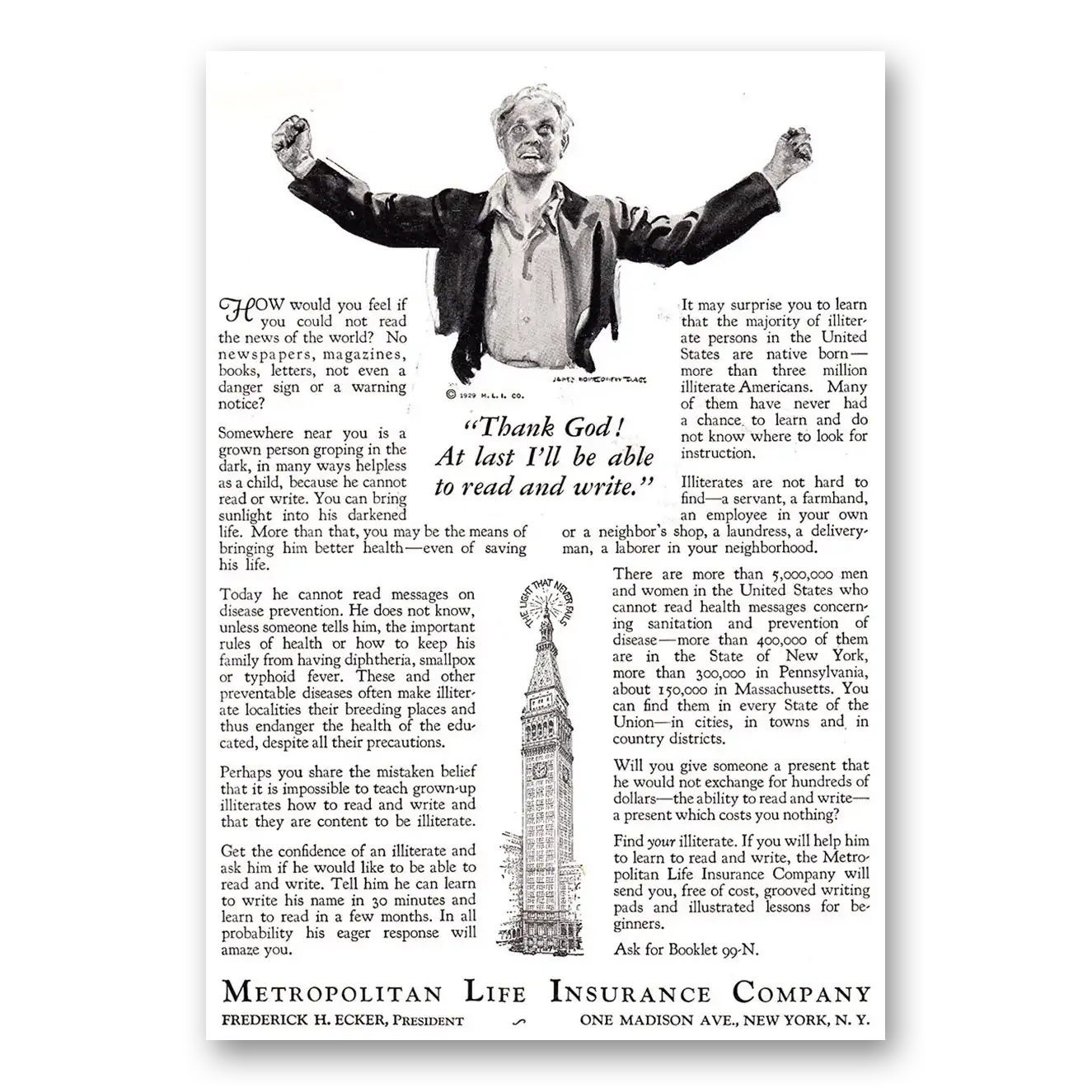 1929 Metropolitan Life Insurance Print Ad | Thank God