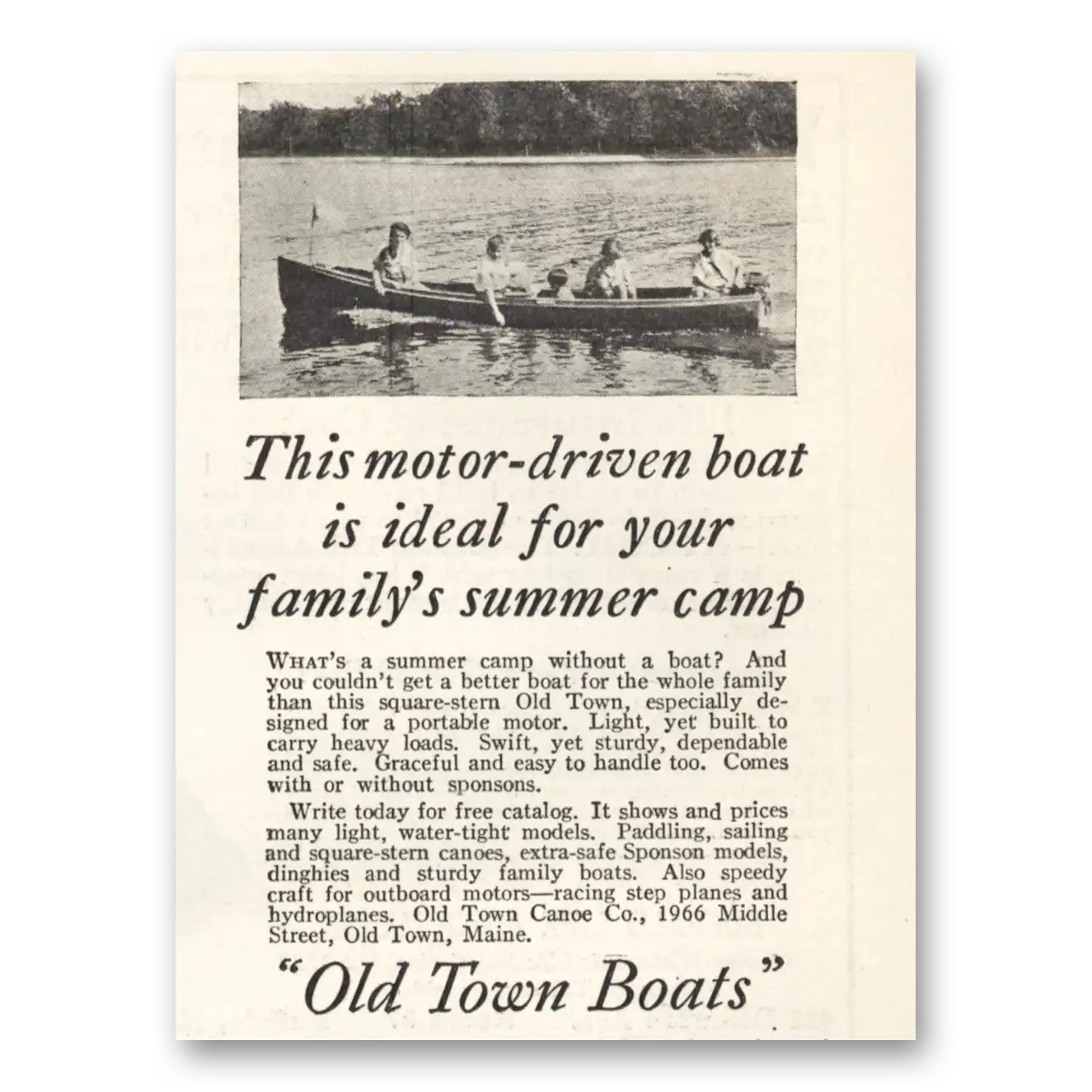 This is an original 1929 Old Town Boats print ad published by Old Town Canoe.