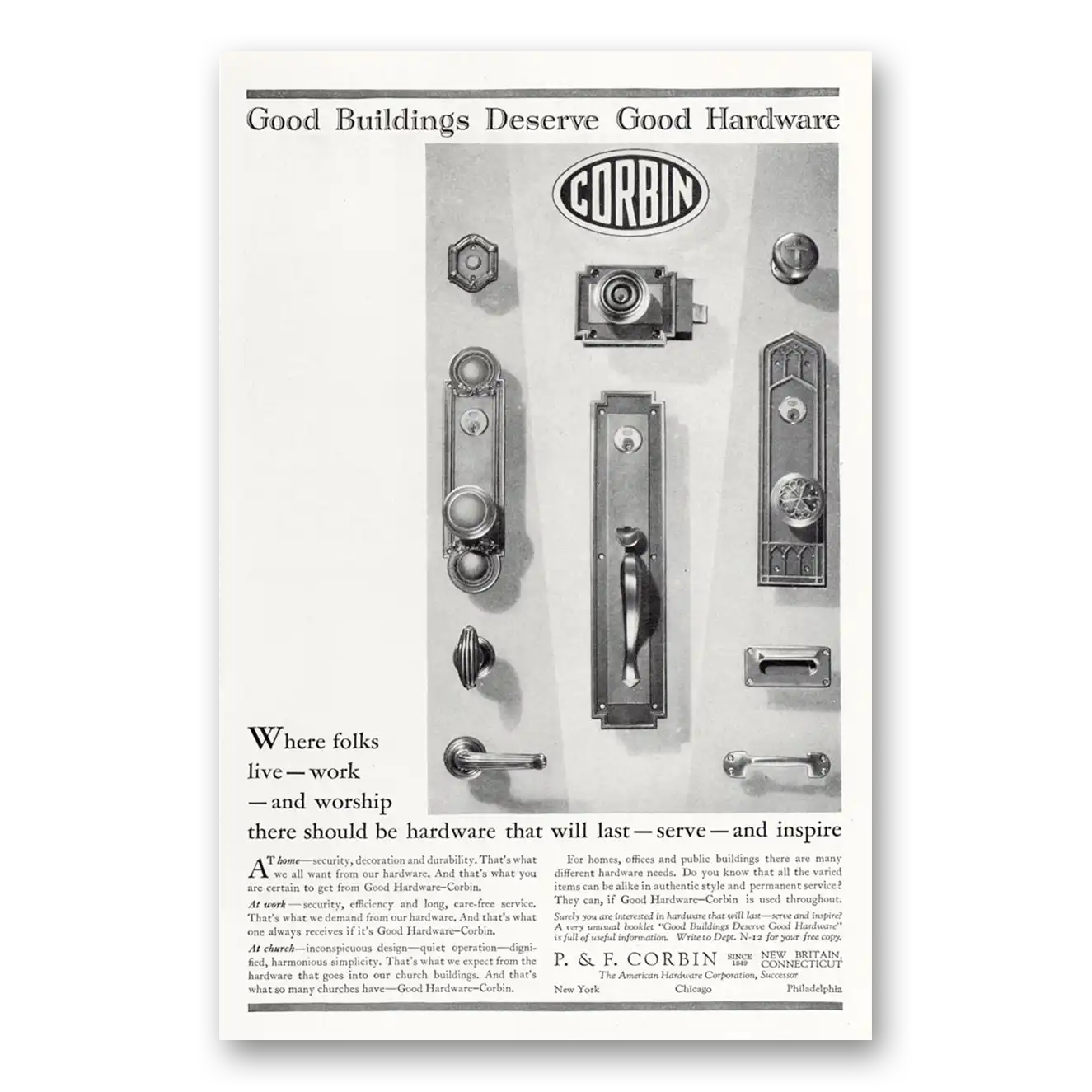 1929 P & F Corbin Print Ad | Folks Live