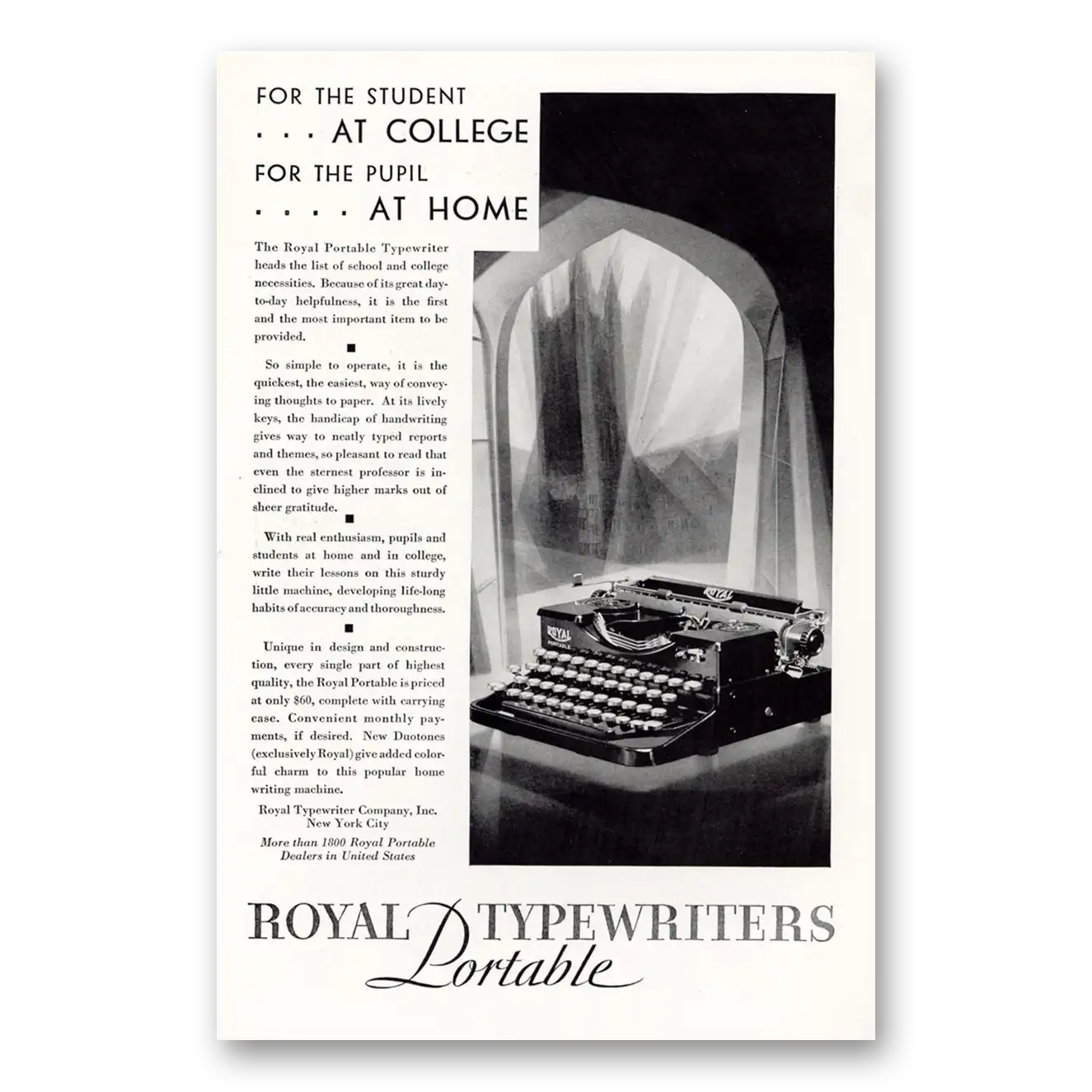 1929 Royal Typewriter Print Ad | Student College