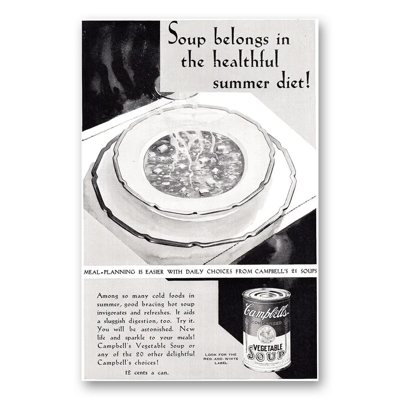 1930 Campbells Vegetable Soup Print Ad | Summer Diet