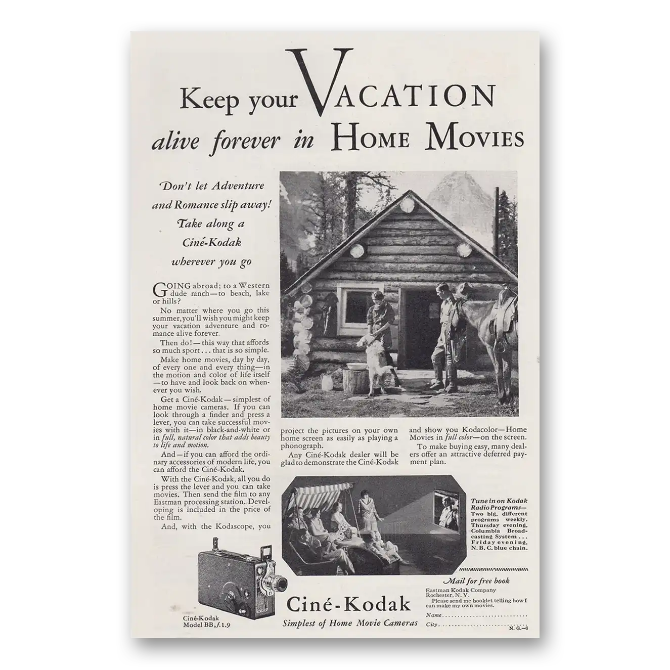 1930 Cine Kodak B Camera Print Ad | Home Movies